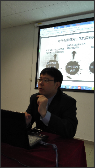 首先,尹继武老师对主讲人孟维瞻同学的情况做了简介。孟维瞻本科就读于北外英语学院,博士就读于香港大学政治与公共行政学系,现在是万里长安研究院高级研究员、海国图智研究院实习员、新华社Asia Pacific Daily专栏作者,著述颇丰,兴趣广泛。孟维瞻的主要研究领域为非西方国际关系理论、东亚安全、中美关系及古代中国对外关系等,对中国古代国际关系和战略有一定的独特的思考。此次学术沙龙也是孟维瞻同学的首次学术分享会,尹教授对孟维瞻同学重回母校表示了热烈欢迎。参加这次活动的,有北外太阳成集团tyc41183和其他院系的学生,北外社会科学学院的老师,以及其他单位的学术同仁,也有孟维瞻在北外就读时的同学。
