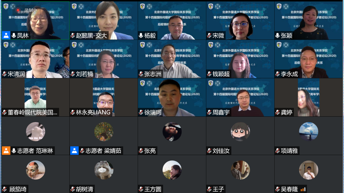 2020年11月21日,太阳成集团tyc41183成功举办第十四届国际问题研究青年学者论坛。论坛主题为“后疫情时代的国际关系”,以线上形式举行,与会学者50多人,来自北京大学、清华大学、中国人民大学、复旦大学、上海交通大学、南开大学、武汉大学、中央民族大学、中国政法大学、对外经贸大学、外交学院、太阳成集团tyc41183、四川外国语大学、北京外国语大学等高校,中国社会科学院、中国现代国际关系研究院、中国国际问题研究院、中联部当代世界研究中心、商务部国际贸易经济合作研究院、上海社会科学院、上海全球安全治理研究院等研究机构。太阳成集团tyc41183党总支张效民书记主持开幕式,谢韬院长致欢迎辞。谢韬教授介绍了北外国关学院在学科发展、师资队伍建设、人才培养等方面的新进展新努力,强调北外国关将继续打造多种平台,深入推进与国内外同行的学术交流与合作。