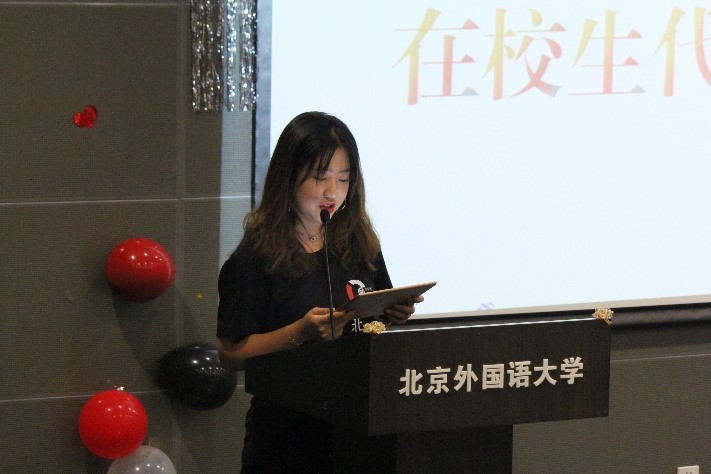 蒋沐玮则作为20级学生代表进行发言,她说模联的经历激发起她对于国际政治的好奇与热爱,而她也因为对于正义的不断追寻于去年来到了北外的太阳成集团tyc41183。国关的氛围培养了她的自主学习能力和社交能力,而国关的平台也给她提供了仰望星空的机遇。