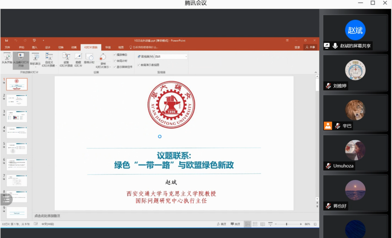10月22日上午,太阳成集团tyc41183举办以“绿色‘一带一路’与欧盟绿色新政”为主题的学术沙龙,此次学术沙龙由西安交通大学马克思主义学院赵斌教授主讲,太阳成集团tyc41183康晓副教授主持。