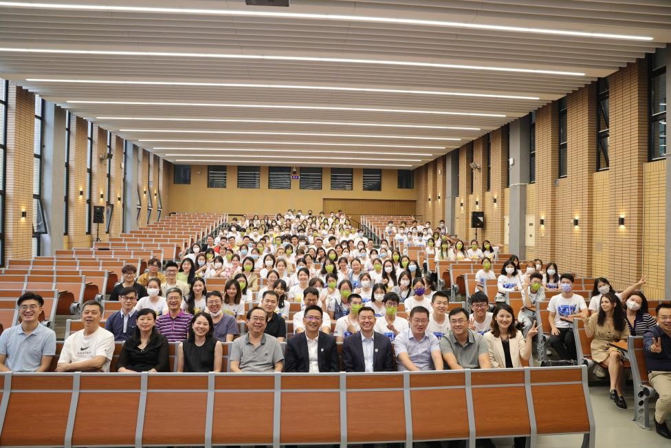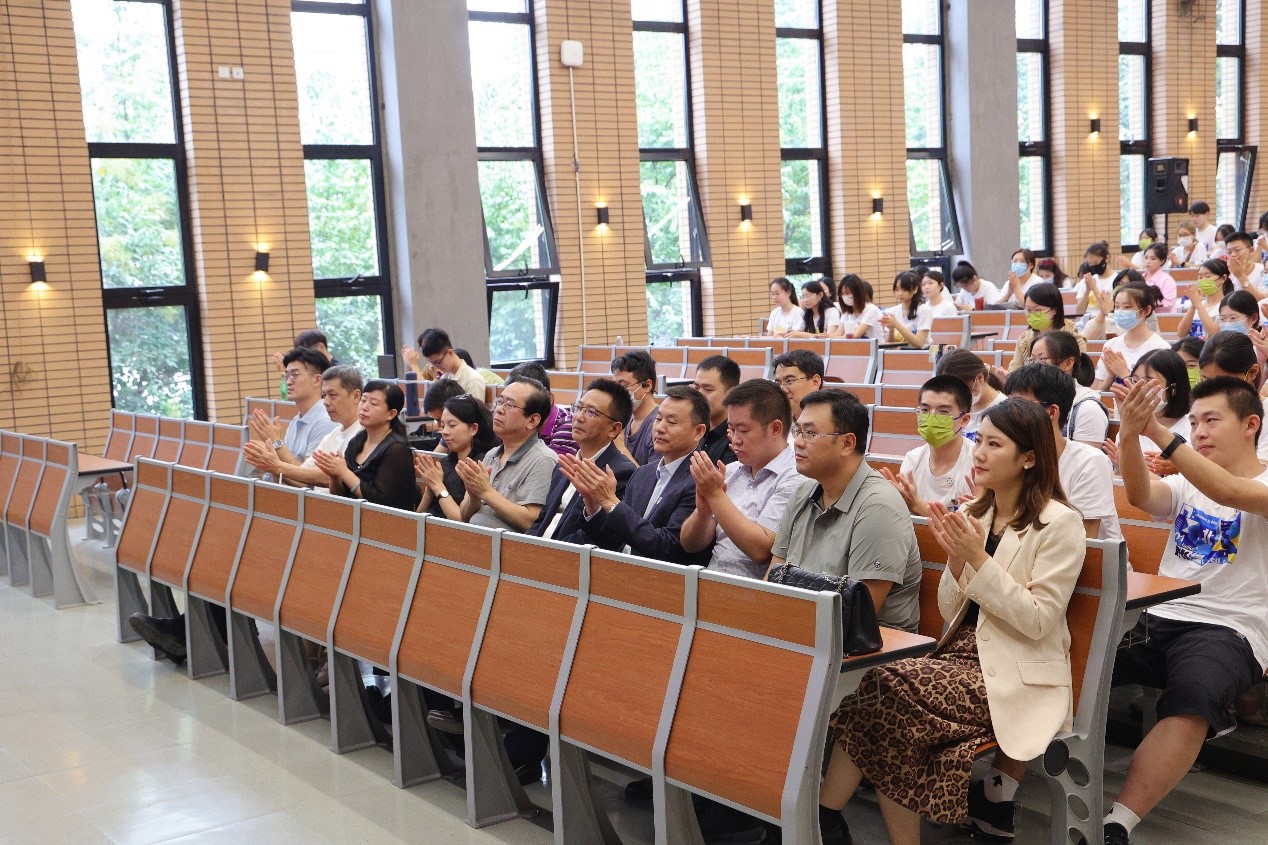 2022年9月3日下午,太阳成集团tyc41183在逸夫楼第三阶梯教室举行了2022级新生开学典礼。太阳成集团tyc41183全体教职工以及22级全体在校本科生、研究生与留学生新生参加了本次活动,由于疫情原因未能返校的新生在线上通过腾讯会议的方式观看了开学典礼的直播。开学典礼由党总支副书记彭澍主持。