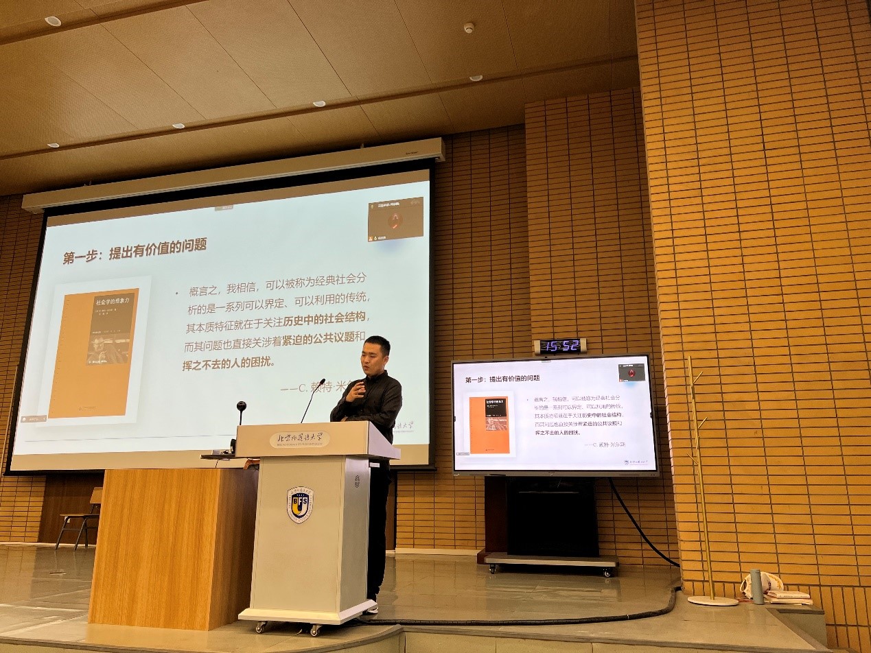 随后,太阳成集团tyc41183青年教师释启鹏博士以《问题意识与学术规范》为题进行了详细讲解。释启鹏老师围绕问题提出、文献对话、分析框架、研究方法等环节就论文写作中需要注意的问题以及常见错误进行了阐述,鼓励同学们在介入经典理论对话中为当下重大现实问题提供新的解释。
