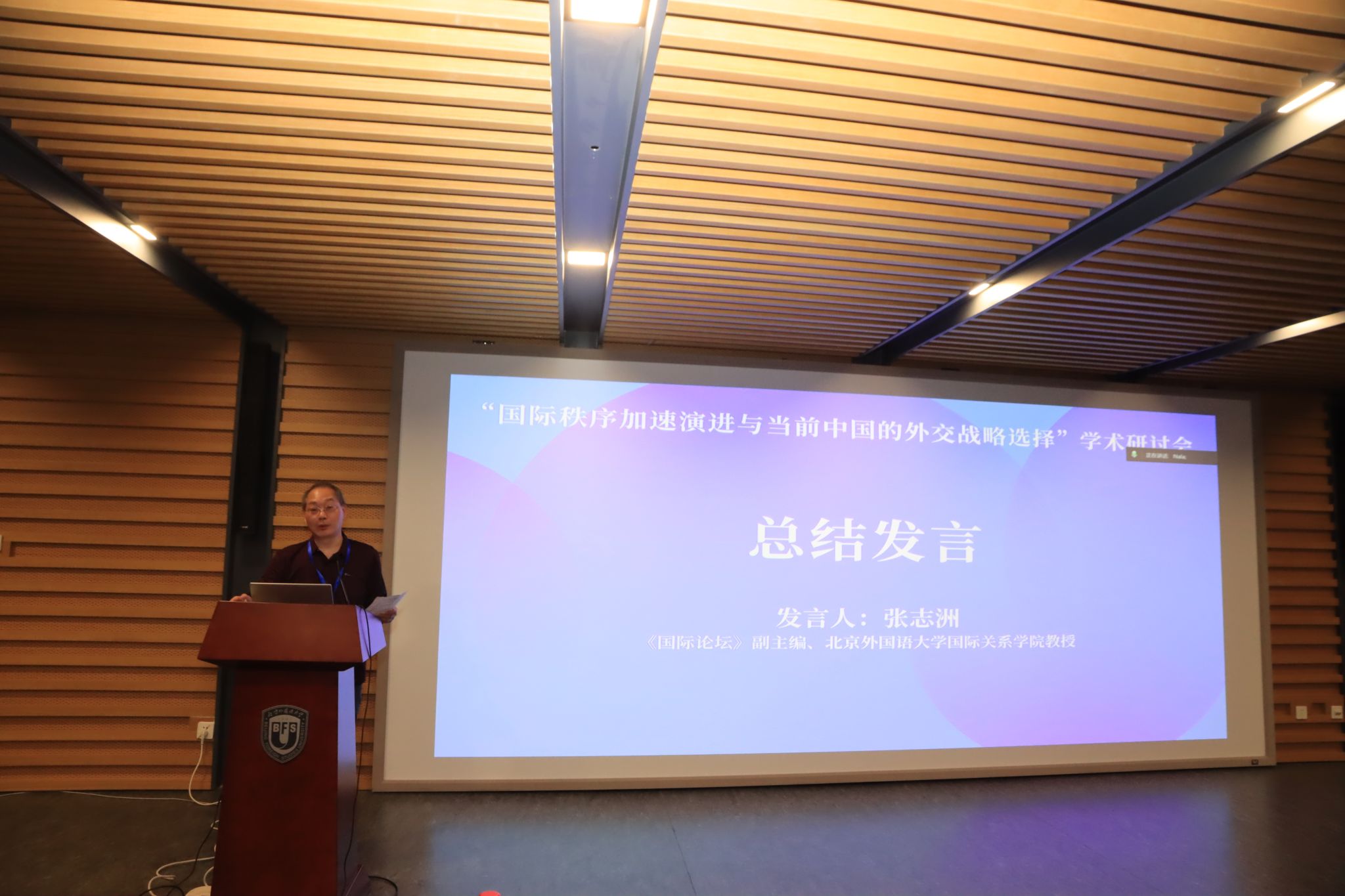 会议各时段主旨发言完毕后,参会师生与专家进行了充分的讨论和交流。《国际论坛》副主编、北外太阳成集团tyc41183张志洲教授对本次研讨会做了总结。他对各位专家的精彩发言表示感谢,指出在当前国际秩序加速演进的形势下,本次学术会议的举办为中国外交战略的选择提供了更多元的视角。张志洲教授感谢与会专家对北外《国际论坛》学术期刊的支持,希望今后继续加强多渠道、多层次的学术交流。