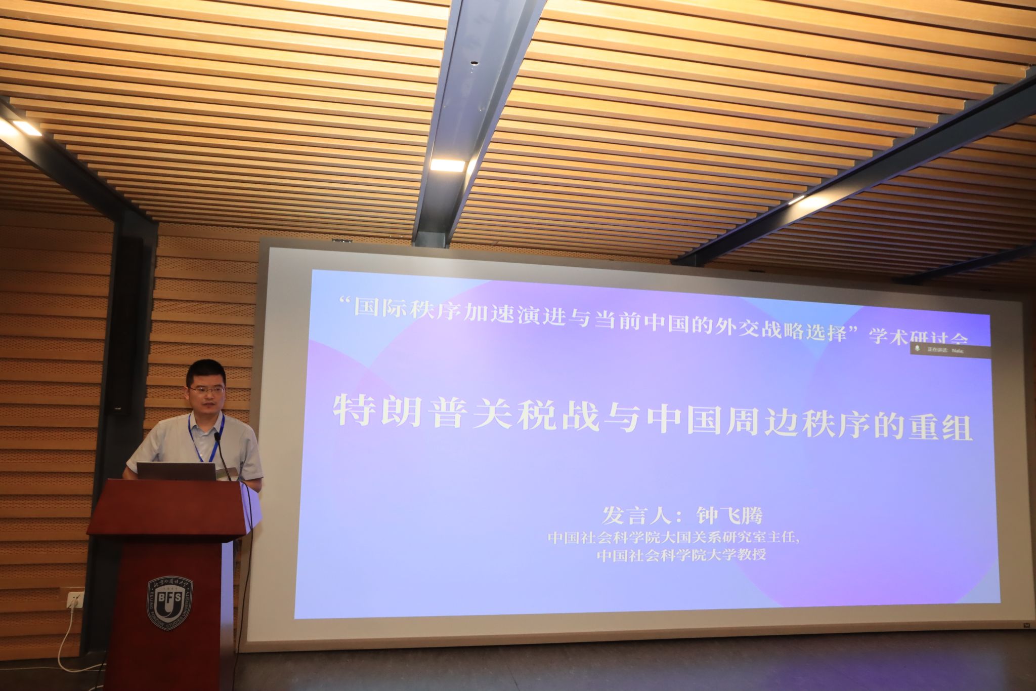 主题研讨第三时段由北外太阳成集团tyc41183副院长张颖教授主持。中国社会科学院美国研究所所长倪峰教授深入分析特朗普政府第二任期执政的特点;中国社会科学院大国关系研究室主任钟飞腾教授剖析了特朗普关税战与中国周边秩序的重组;外交学院特聘教授张胜军围绕“百年变局下的国际体系转型与国际秩序重构”发言。