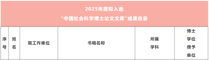 新闻链接:《全国23所高校31部博士论文入选!2025年度“中国社会科学博士论文文库”评审结果出炉!》,https://mp.weixin.qq.com/s/qA1n8pKYw3C5A9Y8AwPiPg