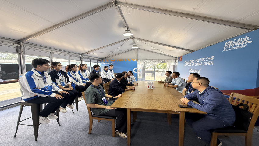 随后,学校教师与中网工作人员及志愿者代表在志愿者之家进行了深入交流。志愿者同学们分享了各自在不同志愿部门的工作经历,以及上岗以来的心得体会。据了解,我校参与此次中网志愿服务的志愿者分布于球员服务、志愿者服务、场地保障、新闻宣传等多个岗位。在赛事期间,他们以饱满的热情和勤勉的工作态度,不仅为赛事的顺利进行提供了坚实保障,还通过实践锻炼有效提升了自身能力和综合素质。