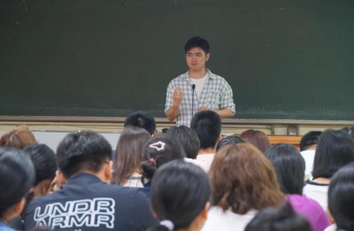 来自17级外交学专业韦云杰同学从青年视域下的青年责任与青少年发展角度,向各位同学介绍自己是如何接触到社会工作和公益事业的。韦同学用切身的支教体验和国际义工经历表达了自己对公益活动的热爱,希望大家能够关注“边缘群体的孩子“,为偏远地区的孩子打开世界的大门。同时他多次强调并倡导大家积极参与到社会公益活动,从关爱山区孩子开始到关国、关天下。最后他以习近平总书记的话作结:“时代的责任赋予青年,时代的光荣属于青年”。
