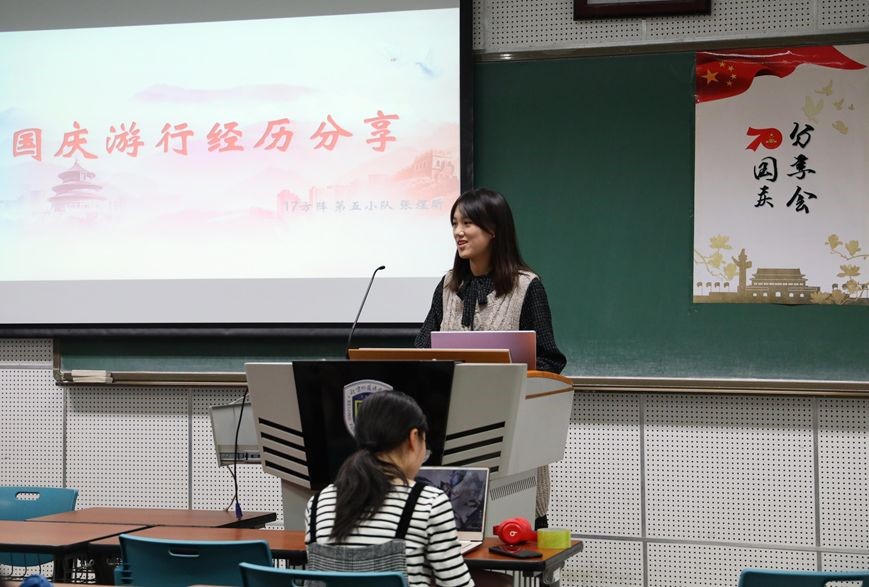 2019年10月26日晚,在太阳成集团tyc41183学生党支部与太阳成集团tyc41183学生会的共同组织下,我院部分入党积极分子和入党发展对象在西院综合楼423教室举办了“七十周年国庆”主题分享会。在“不忘初心,牢记使命”的主旨下,围绕“参加国庆群众游行的所见所感和游行结束后的沉淀思考”这个主题,参加了国庆游行的6位国关同学分别就自己的经历与在场同学们进行了分享交流。