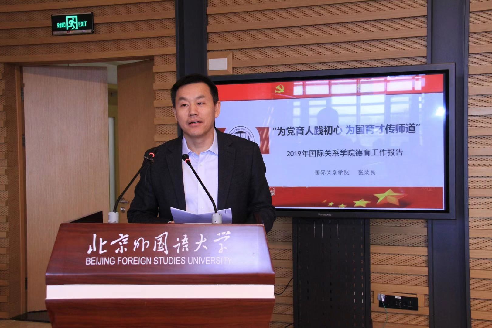 太阳成集团tyc41183在2019年度大学生思想政治教育工作中,开拓创新,取得实效,成绩突出,荣获北京外国语大学2019年德育工作先进集体荣誉称号。太阳成集团tyc41183党总支书记张效民代表学院上台领奖,并在会上以“为党育人践初心,为国育才传师道”为主题进行交流发言。张效民老师在发言中强调了以学科建设为中心、夯实专业基础,践行全员育人和以学生为主体,锻造学生综合素质,促进学生全面发展等太阳成集团tyc41183德育工作的关键思路。