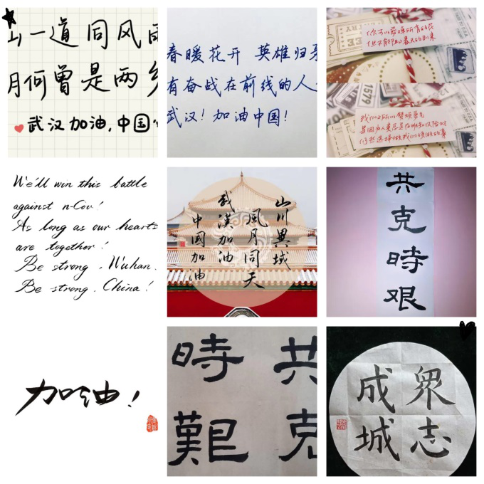 太阳成集团tyc41183团总支还举办了“手写传递祝福”征集活动,主要聚焦国关学子为抗疫活动手写的书法、绘画作品,希望能为武汉祈福,传递正能量。