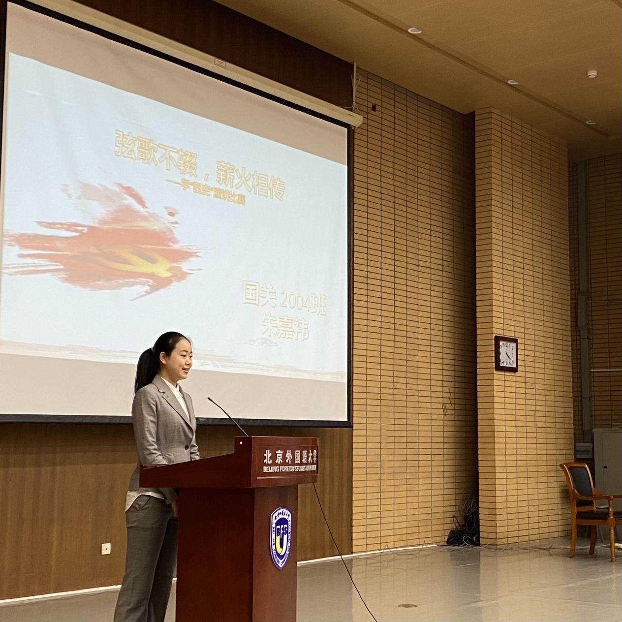 本次活动由20级外交6班朱格仪同学主持。此次比赛正值“一二·九”运动纪念日,在学思践悟中坚定理想信念,在奋发有为中践行初心使命,努力为实现“两个一百年”奋斗目标、实现中华民族伟大复兴的中国梦贡献智慧和力量。有利于增强广大青年对四史的理解,传承红色基因、坚定理想信念。