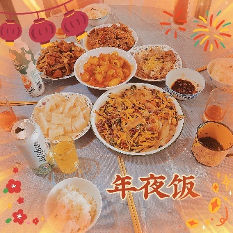 2001班陈沫同学分享了自己家乡东北的冰灯和年夜饭。