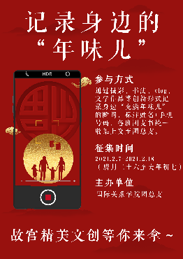 “年年岁岁花相似,岁岁年年人不同。”本次活动中,国关学子在寻找的过程中体味了“年味儿”的深层含义、挖掘了传统节日的文化内涵。我们青年要担负起弘扬民族传统文化的大任,不仅要继承传统文化,更要创新传统文化的表现形式,以青年人的视角赋予传统文化新时代的活力。