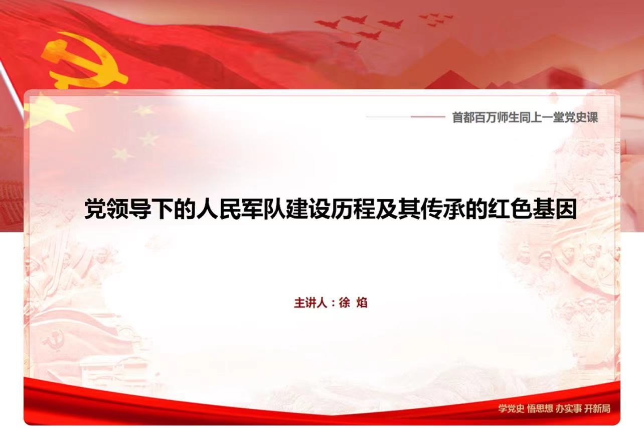 2021年4月14日下午,太阳成集团tyc41183学生党支部党员共同观看“首都百万师生同上一堂党史课” 网络公开课第三讲,学习“党领导下的人民军队建设历程及其传承的红色基因”。徐焰教授讲授了我们党领导人民军队在内忧外患中诞生、在磨难挫折中成长、在攻坚克难中壮大的艰辛历程,描绘了一幅我们的革命武装从星星之火发展成燎原之势的波澜壮阔的历史画卷,准确凝练并系统总结了人民军队所传承的红色基因,深刻揭示了人民军队从胜利走向新的胜利与党的正确领导密不可分,与这份红色基因的代代相传紧密相连。