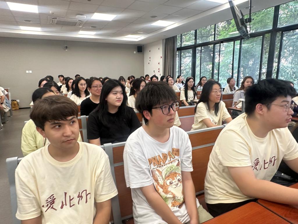首先,杨毅老师向新生们表达了热烈的欢迎与诚挚的祝贺,并深刻阐述了从中学步入大学这一人生转折点的重大意义。他鼓励新生们以积极的心态和科学的方法,合理规划时间,力求在德智体美劳各方面均衡发展,充分利用北外这一国际化平台,深化外语学习,拓宽学术视野。