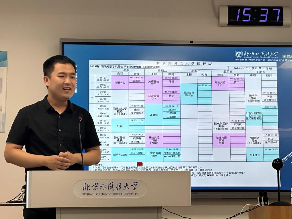 释启鹏老师首先代表学院向研究生新生致以热烈的欢迎与祝福,并简要介绍了北外国关学院研究生教育的整体概况。随后,宋亦明老师针对研究生阶段的学习特点,就“本科生与研究生的差异”“研究生必读书目推荐”及“研究生学习建议”等话题进行了深入剖析与指导。他鼓励研究生们迅速适应新身份,深入钻研学术,同时学会平衡学习、工作与生活的关系,努力成为德才兼备的优秀人才。