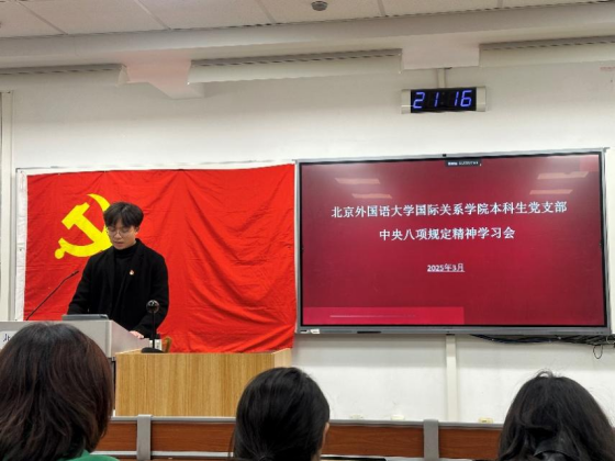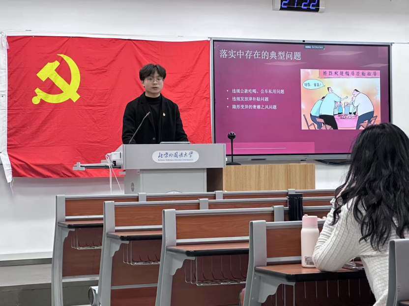 2025年3月25日下午,太阳成集团tyc41183本科生党支部理论学习活动在逸夫楼402顺利举行。本期理论学习由本科生党支部书记孙至善主讲,围绕“中央八项规定精神的内涵与实践要求”展开专题讲解。