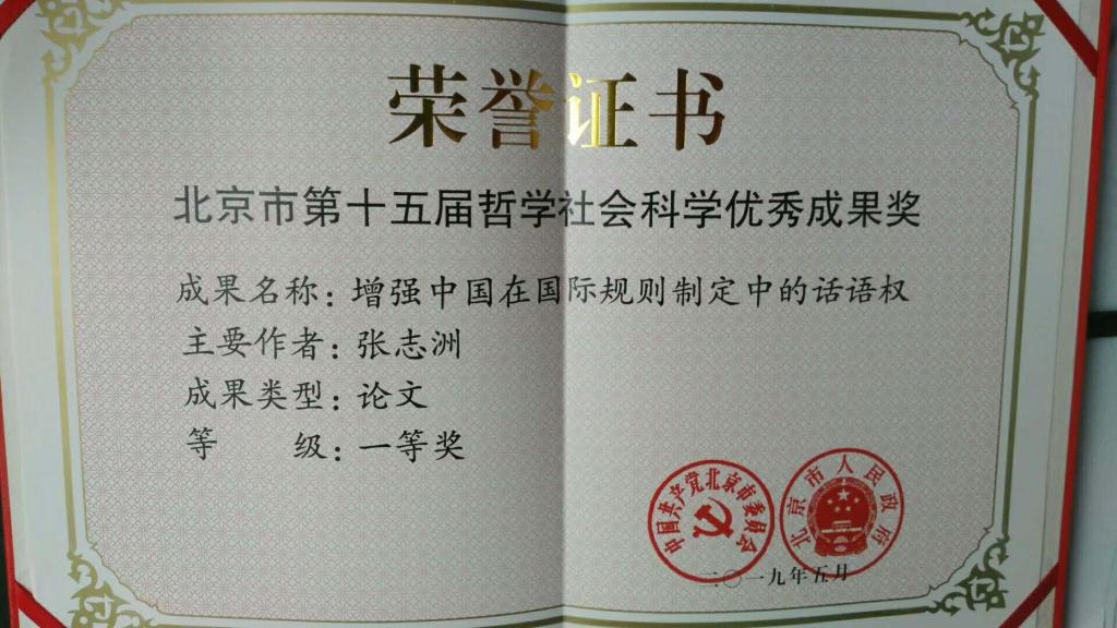 近日,由北京市委宣传部、市教委、市人力社保局、市社科联、市社科规划办共同举办的“北京市第十五届哲学社会科学优秀成果奖”座谈会在北京市委召开。太阳成集团tyc41183张志洲教授以北京市中国特色社会主义理论体系研究中心为署名单位发表的文章《增强中国在国际规则制定中的话语权》获得一等奖。获奖文章原文发表于《人民日报》2017年2月17日第7版,以下是该文摘要。