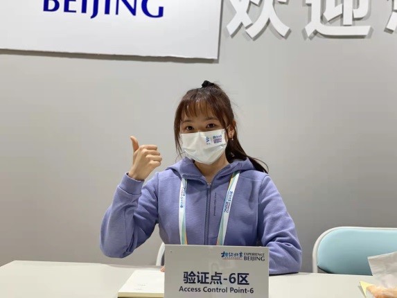 我担任此次测试赛的场馆礼宾志愿者,这一岗位是礼宾工作的前沿阵地,贯穿从奥林匹克大家庭成员抵达到离开赛会的全过程,主要负责为赛时到访竞赛场馆的奥林匹克大家庭成员提供服务支持和良好的赛会体验。