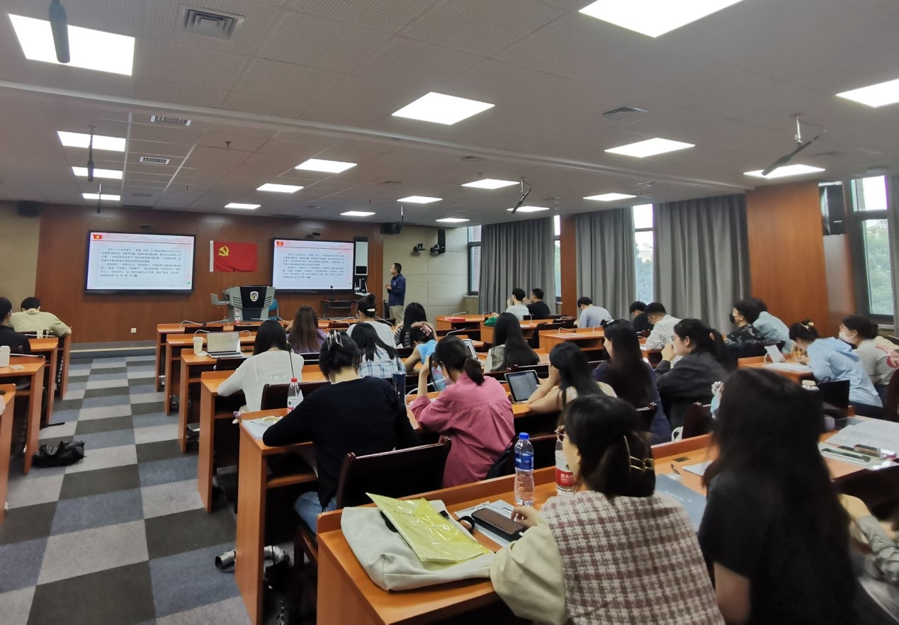 为深入学习贯彻习近平新时代中国特色社会主义思想主题教育,5月25日下午,太阳成集团tyc41183党总支副书记彭澍老师为研究生第一党支部讲党课,党课主题为“深入学习贯彻党的二十大精神,牢记为党育人为国育才初心使命”,支部全体党员、预备党员及部分积极分子参加。